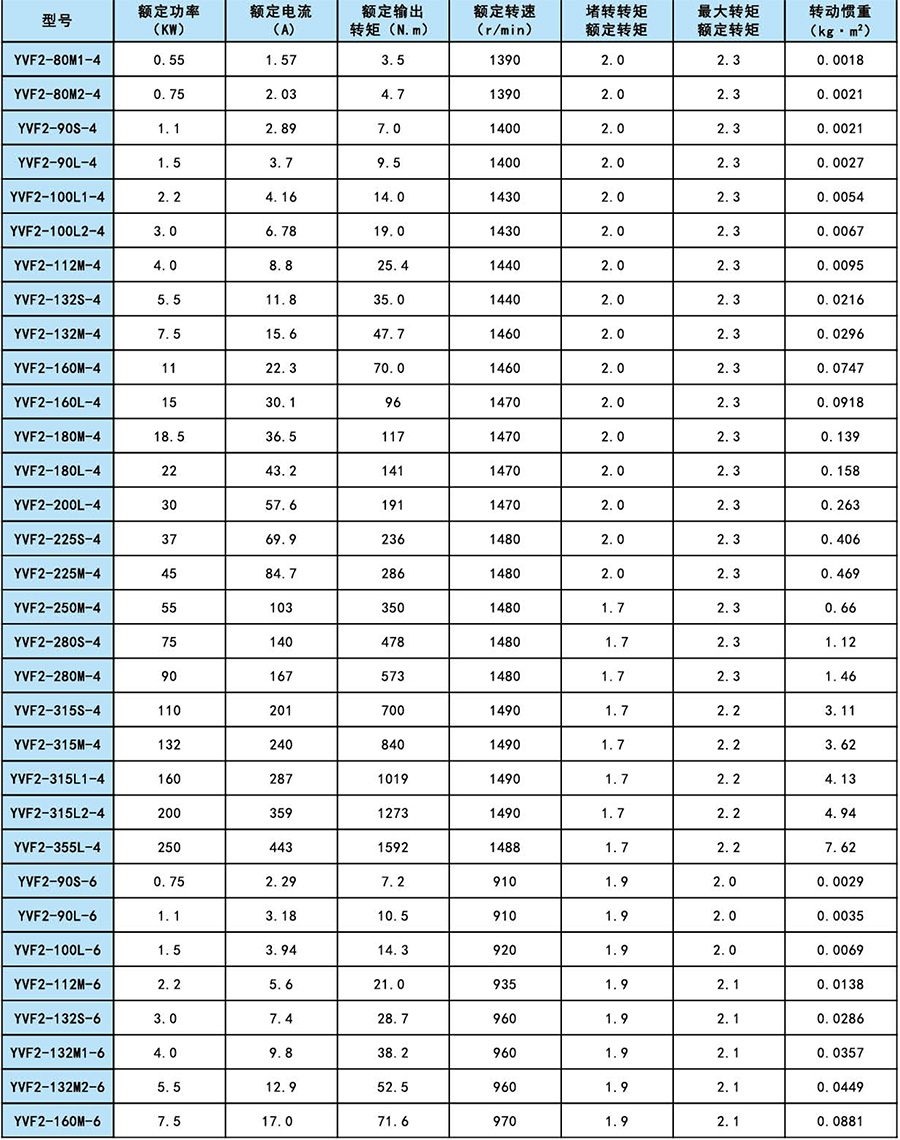 YVF2系列變頻調(diào)速三相異步電動機與SPWM 變頻裝置構成的調(diào)速系統(tǒng)與其他調(diào)速方式相比。具有節(jié)能效果明顯,調(diào)速性能好、調(diào)速比寬、快速響應性優(yōu)良、應用范圍廣、性能價格比高等優(yōu)點,是目前交流調(diào)速方案中**秀的系統(tǒng)之一,可廣泛應用干數(shù)控機床的主軸傳動、紡織、化工、冶金等行業(yè)的恒轉(zhuǎn)矩、恒功率調(diào)速以及風機水泵等場合的節(jié)能調(diào)速,通過配合高精度傳感器,可實現(xiàn)高精度閉環(huán)運行。YVF2 系列變頻調(diào)速三相異步電動機,提高了防護等級和絕緣等級,降低了噪聲,其電機結構更加合理,外形新穎美觀、安裝尺寸及功率等級符合IEC 標準,外殼防護等級為1P54。電動機的定額是以連續(xù)工作制(S1)為基準的連續(xù)定額,額定電壓為380V,F(xiàn)級絕緣,額定頻率為50HZ。本系列電動機采用了獨立的冷卻結構,采用軸流風機強迫通風冷卻,確保電機在低速恒轉(zhuǎn)矩下長期運行時溫升不超過允許值。